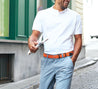 This is La Boucle, the ultimate belt. Created from vegetable tanned leather and a poly-fibre weave, each belt is designed to suit all waist sizes and activities. With its stretchable technology, we ensure the fit is always comfortable, while at the same time being stylish and versatile. Wedding? Work event? Festival? A La Boucle belt is ready to go at a moment’s notice. Swing with life. Swing with La Boucle.