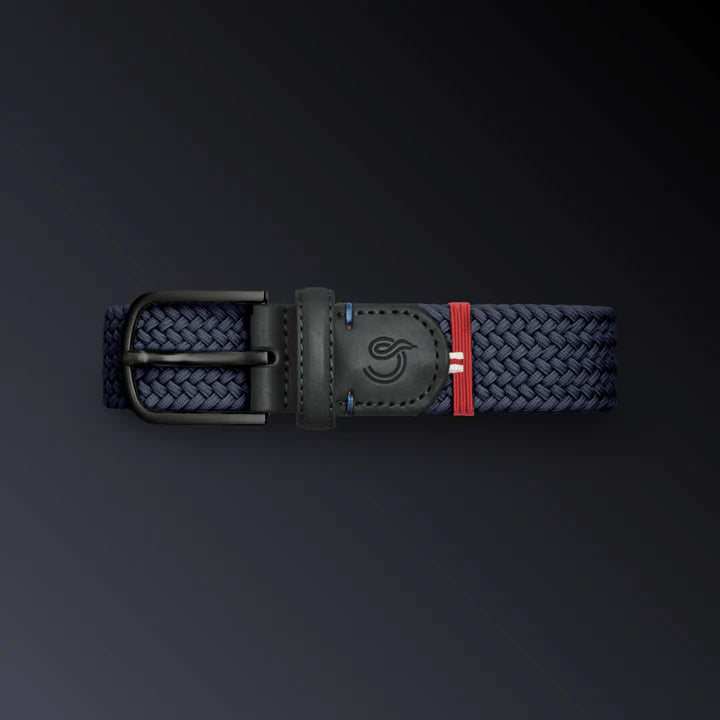 The Memphis La Boucle belt, braided in the colour Dark Blue. Nickle-free buckle with black DLC coating for optimal elegance and durability.