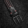The Washington La Boucle belt, elastic braided in leather, black colour. Finished with vegetable tanned Italian leather. Stainless steel buckle with DLC coating for optimal strength and durability, and minimal risk of skin allergic reactions.