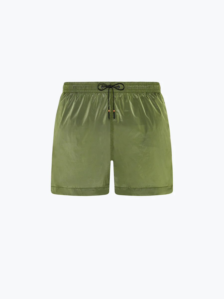 These beach shorts are distinctive for their extreme lightweight quality and the extensive range of appealing colors of the sought-after crinkle-effect, quick-drying stretch fabric. The semi-iridescent effect adds a subtle touch of originality to this ongoing style from the collection, which features an adjustable drawstring waistband with piping and contrasting orange finials. The shorts feature side French pockets and a back pocket that is closed by an invisible zipper. The black micro-injected logo adds the finishing touch to this beach life hero.