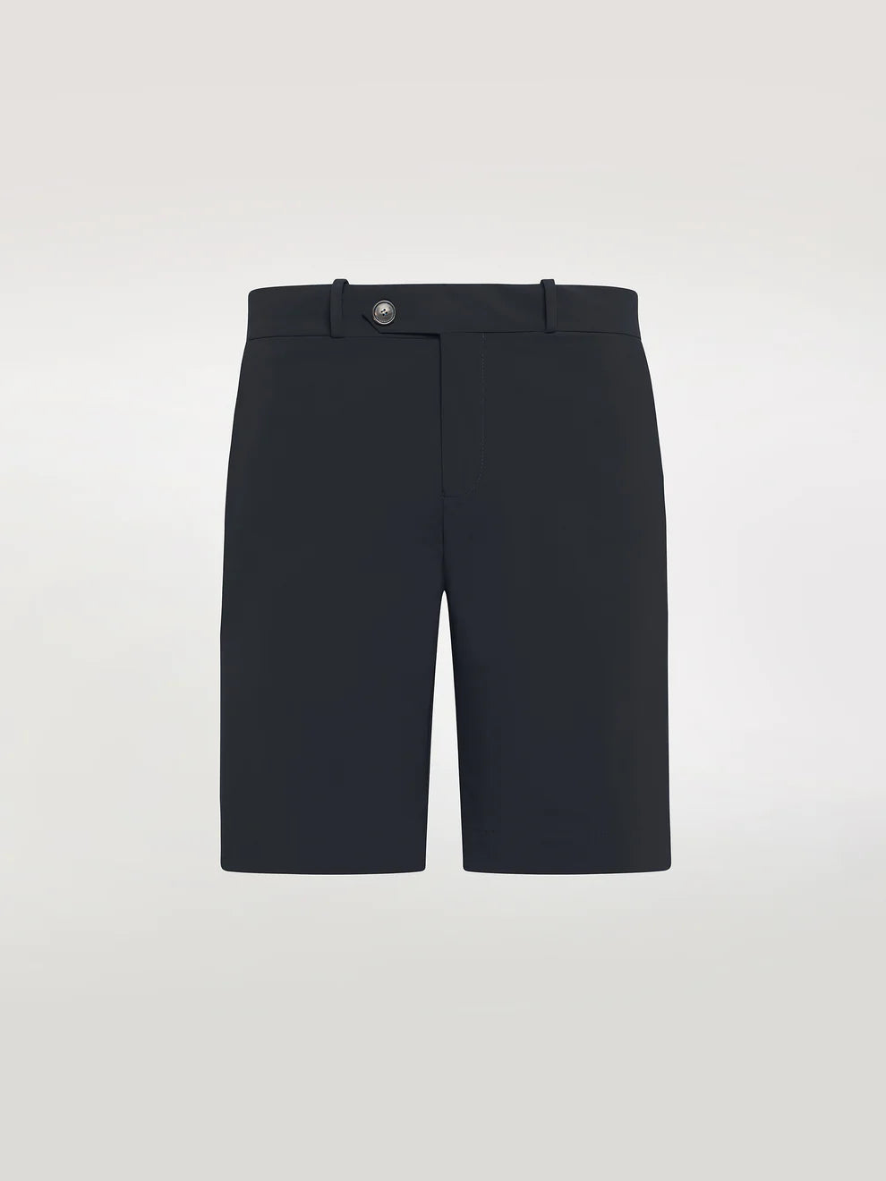 These mid-length bermuda shorts are crafted in the exclusive SURFLEX® stretch fabric, which provides coolness and comfort even on the hottest days. Contemporary construction is enhanced by classically inspired details such as the loops belt adjusted by a horn button, the flap concealing the metal zipper, and the French-style side pockets. Back welt pockets add a note of classic elegance to the super-matte effect typical of gabardines. The wide color palette allows for unlimited combination possibilities to a summer passepartout style as an alternative to full length chinos.