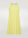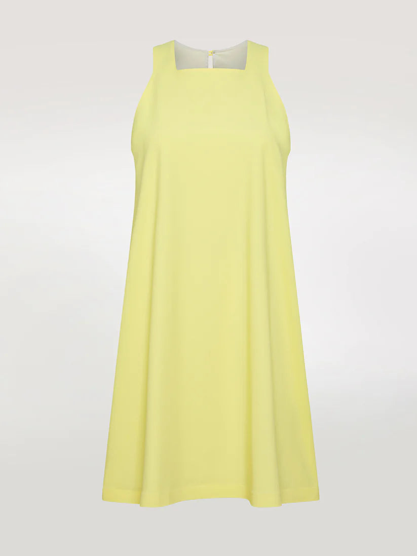 Its trapeze shape lends a bold, contemporary character to this continuation garment, which becomes a statement piece. A soft, cool, matte-look dress made in the exclusive SURFLEX® stretch fabric.