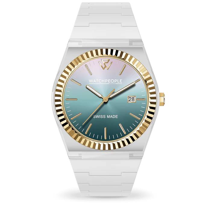 Elegant and contemporary, the WP1 Sunset verdigri subtly combines boldness and sophistication. Its transparent silicone strap offers a sleek, modern touch, while the dial features a palette of sunset blues enhanced by golden accents, evoking the magic of twilight. This Swiss Made watch embodies Swiss craftsmanship of excellence, while its sapphire crystal provides unrivalled protection against scratches, preserving its beauty.
