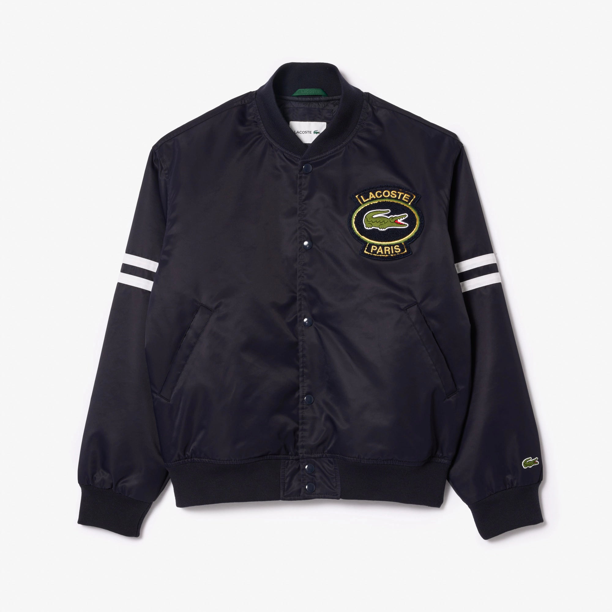 Badge poitrine, broderie iconique et rayures contrastées, portez haut l'ADN Lacoste avec ce bomber rembourré léger. Sa coupe courte et ses finitions signature apportent un supplément de style au modèle.