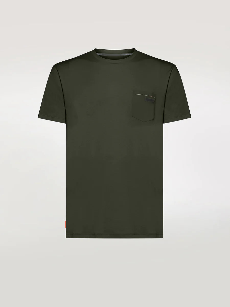 A stylish addition to any casual summer outfit, this monochrome T-shirt in soft stretch jersey is comfortable and naturally shaped. Its smooth touch and cool, comfortable fit are combined with the high breathability and quick-drying easy care fabric. The Shirty Revo is available in a wide palette of trendy colors and features the tone-on-tone appliqué chest pocket in SURFLEX® with a raw cut, embellished with fluo orange inner taping.