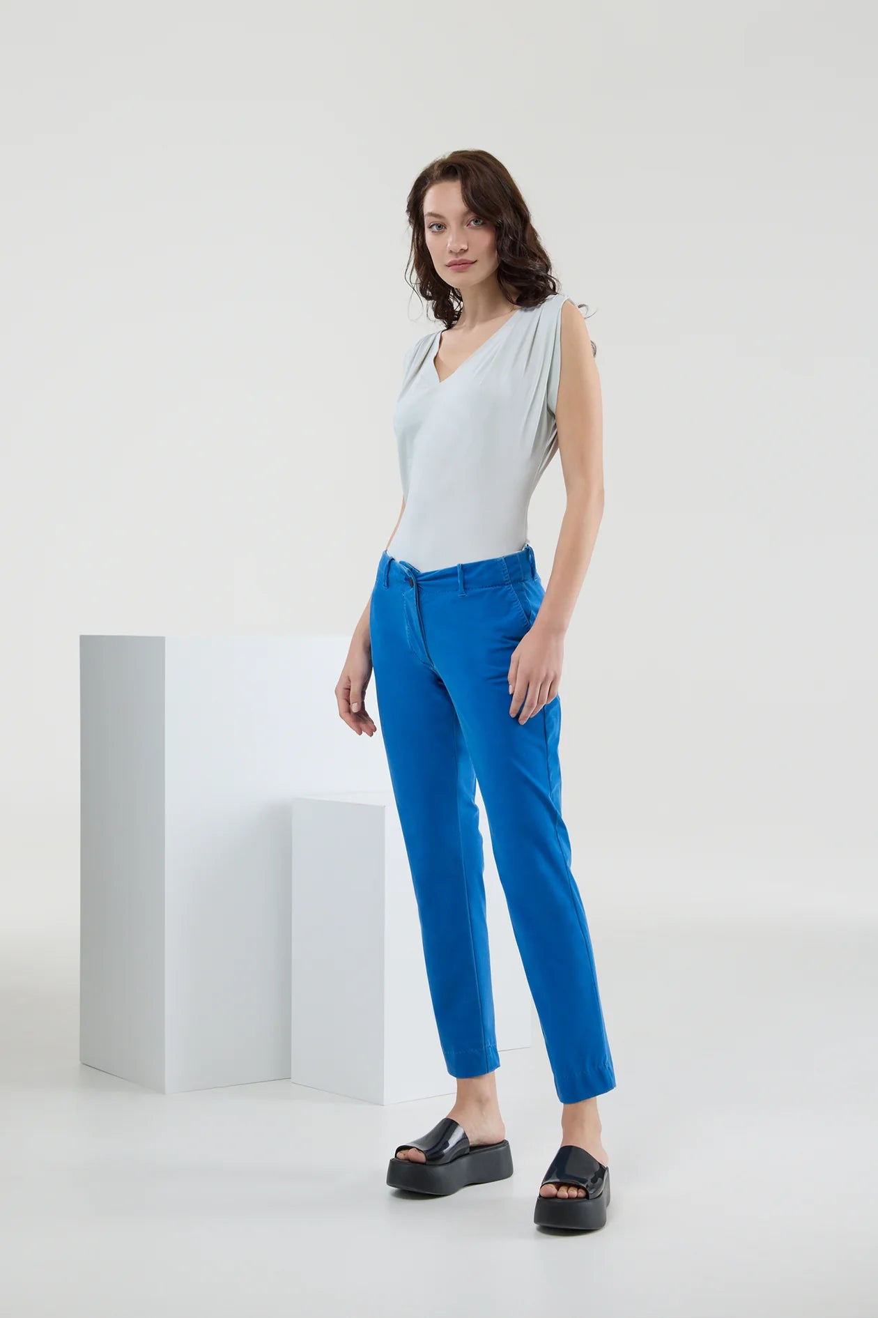 The Shirty Oxford Kim Wom is a sleeveless shirt with an elegant look, in the matte and extremely soft to the touch Oxford fabric. The pleats on the shoulders create a refined drapery, while the décolleté is enhanced by the wide V-neck. The refined shape is highlighted by the sidecut of the waist.