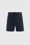 These medium length surf shorts move from the waves to the seafront with huge personality. The lightweight, matte effect and quick-drying stretch fabric is available in a wide palette of distinctive colors. The waist is adjustable with tubular drawstring and contrasting orange ends. The model features a flap-closed, flush pocket on the left leg and is signed on the rear belt by the Jacron in the iconic Razzle Dazzle texture, with contrast fluro orange thread. A true summer must-have.