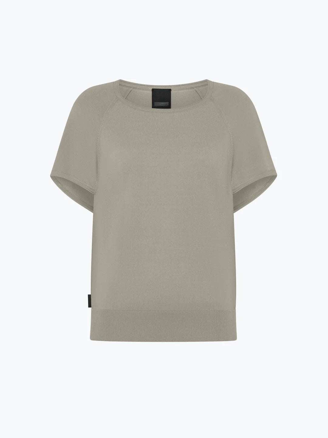This monochrome short-sleeved sweater is crafted from a blend of soft cotton and viscose stockinette stitch yarn with a light, smooth texture. This relaxed, modern design features a loose crew neck and dropped shoulders, which contribute to its comfortable, effortless fit. The garment is cool and comfortable, making it ideal for daytime and leisure wear. It can be paired with cargo pants, or worn under a Boyfriend Blazer for an added touch of informal elegance to a casual chic look.