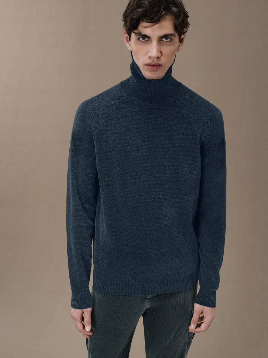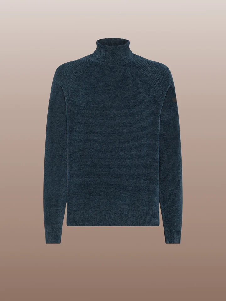 This chenille turtleneck sweater, with a velvety effect and extremely soft to the touch, is an essential item in the winter wardrobe. Warm and comfy, it features a regular fit. The design and the comfort of the stretch fabric are highlighted by the ribbed raglan cut of the long sleeves. Its excellent wearability is refined by the ribbed knit on the high collar, the cuffs and the hem, which has an unmistakable note of style in the orange welt on the back. The black micro-injected logo on the left sleeve completes the style available in a wide color palette, ideal for completing a range of informal and casual-chic outfits.