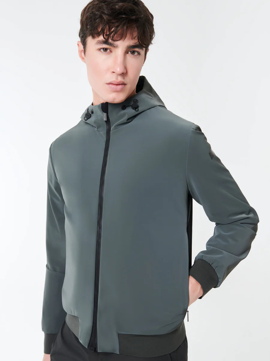 This summer jacket, with a bold urban appeal, is crafted from exclusive Stratofabric#2 with a glossy look. The Wilson Hood Jkt is designed to be lightweight and flexible, allowing it to be easily stored in your travel bag and taken with you on your summer adventures. The design includes a fixed hood, which can be adjusted by an elastic drawstring, a thermo-taped full-zip front closure, and side pockets with invisible zippers. The subtle presence of ventilation eyelets at the armpits is another thoughtful detail that enhances wearing comfort. The Surflex® lining is tastefully accented by the invisible zippered breast pocket, which bears the “Made with love, designed in Tuscany” heart tag. The signature fluorescent orange tape on the back hem provides an additional touch of distinction to a jacket that is both versatile and dynamic.