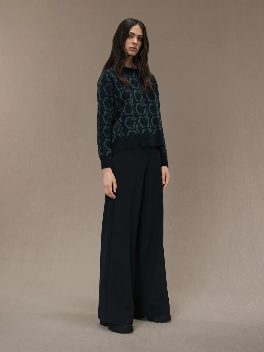 Winter Livia Wom Pant rediscovers the lively creative spirit of the 1970s. The minimalist design and clean lines are notable for the high waist and wide leg, allowing for a comfortable and extremely versatile fit. The exclusive SURFLEX® stretch fabric, with its super-matte look, soft-touch and wrinkle-free properties, perfectly matches the vintage allure of the incredibly comfortable fit. Stylish details such as slash pockets, and belt loop closure with horn button and concealed zipper, add a touch of understated elegance. Available in a wide palette of seasonal colors, the pants are suitable for pairing with a tapered Cupro fabric shirt and outerwear in shades of gray in the creation of sophisticated, striking looks.