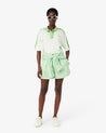 Créateur de sportswear depuis 1933, Lacoste dévoile un short à l’allure chic et décontractée. Confectionné en lin, une matière légère aux propriétés thermorégulatrices et respirantes, il se distingue par sa coupe ample et un élégant imprimé à rayures. Des détails soignés, à l'image d'une boutonnière, complètent le design de ce must-have.